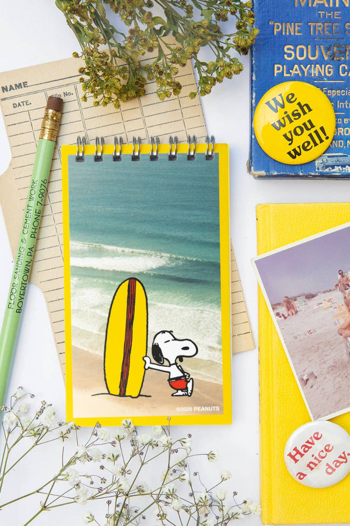 A nostalgic nod to the stationery aisle—those tiny spiral notebooks you’d flip through while your mom checked out at the local five-and-dime. These vintage-style memo pads are straight out of the 1980s, reimagined with photo-real backgrounds and everyone’s favorite beagle doing what he does best: being adorable.