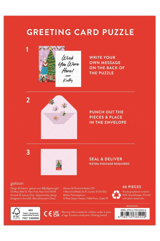 The Meowy Christmas Greeting Card Puzzle ingeniously combines festive correspondence with interactive entertainment. This innovative design features a precision-cut mini puzzle that transforms a holiday greeting into an engaging activity. Crafted with premium puzzle greyboard and vibrant, fade-resistant inks, the whimsical feline-themed illustration delivers both seasonal charm and puzzle-solving pleasure. Recipients will appreciate this thoughtful alternative to traditional cards, offering both a message and memorable experience in one sophisticated package.