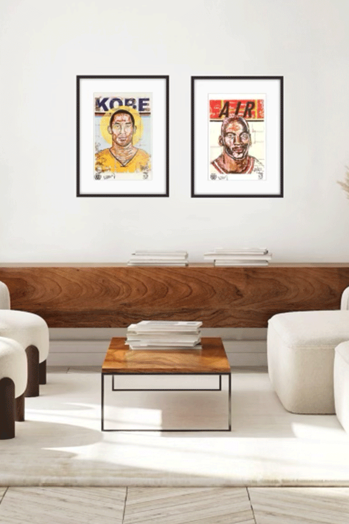 Michael Jordan was a truly iconic figure in the game and so fun to watch dominate in his day of playing. His athleticism, his grace under pressure and all around style was a joy to witness the world over. The original art piece is sewed up canvas pieces , oil pastel, house paint and spray paint.