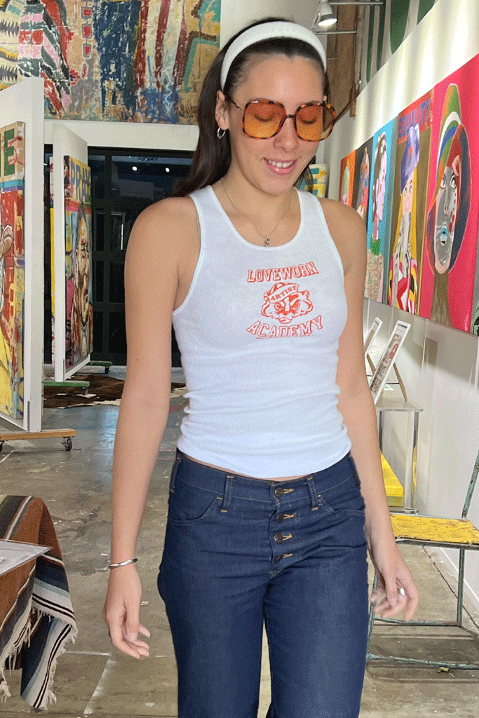 Hand screened with our fun Loveworn graphics.