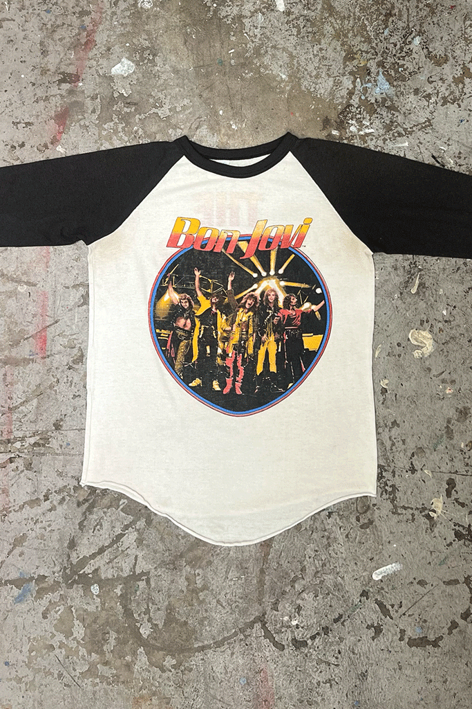 A perfect raglan baseball 3/4 sleeve t-shirt for the Bon Jovi fan. Great graphics and the back of the t-shirt rules... THE WETTER THE BETTER. Made in USA of course . 50/50 cotton poly blend. Such an iconic style for the vintage lover.