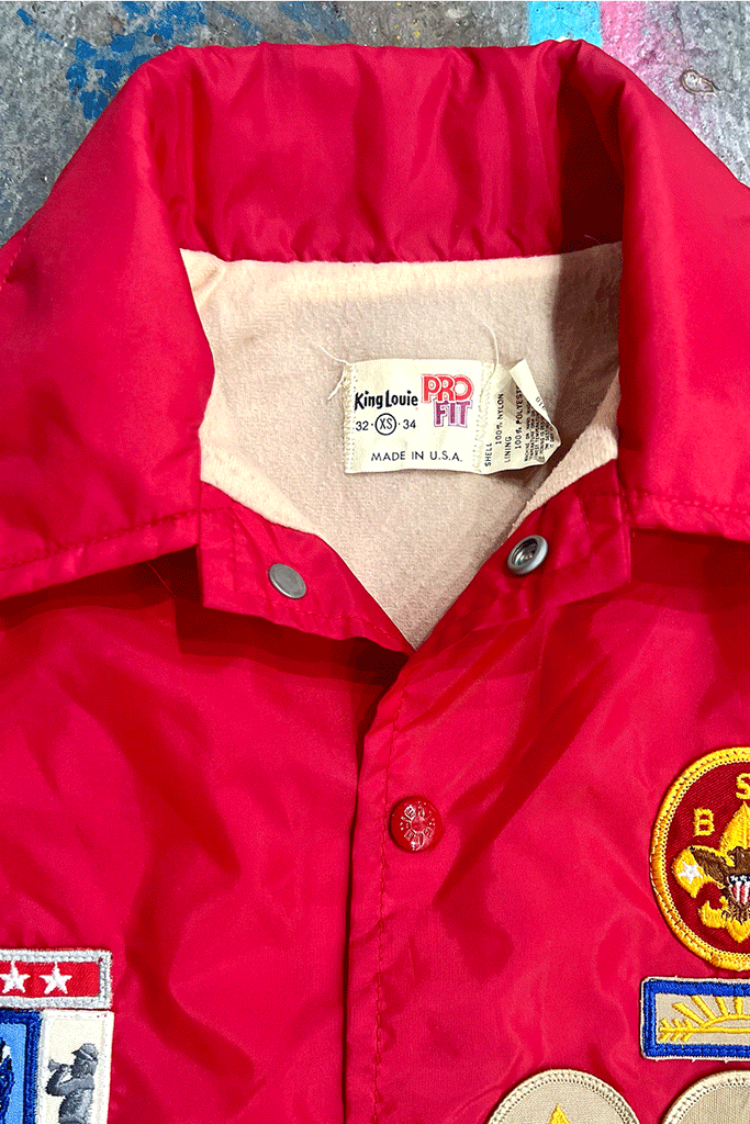 This Boy Scout windbreaker was definitely loved with all the cool patches sewn on. The left arm has patches from 1988 to 1994 and the front is filled with even more. The perfect camp-core style for the streets.
