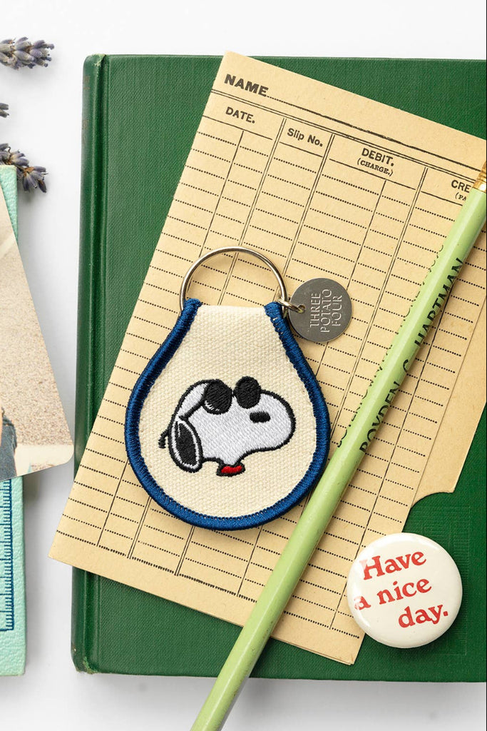 Super cute double-sided embroidered keychain with classic vintage-inspired Snoopy styling. Made with high-quality materials for a durable, long-lasting accessory. 2.5" x 2.25" Double-Sided Embroidery Embroidered Natural Oxford Cotton Metal Split Keyring