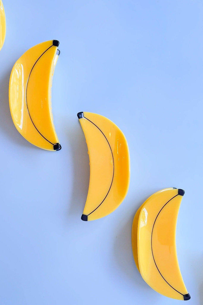 Brighten up your style with this colorful Banana Bunch Hair Claw! Crafted from cellulose acetate, a plant-based alternative to plastic, this playful accessory adds a fun twist to your look. Measuring 4.15" x 1.6", each claw is unique with its vibrant color variations. Original Jenny Lemons design. Handmade and hand-painted.